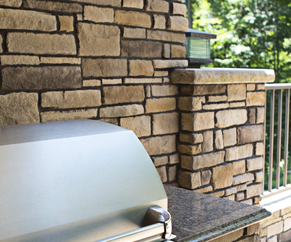 With no grout required, this is often the preferred material. ProVia's stacked stone is a popular choice because of the careful craftsmanship of each stone to ensure the various profiles can easily fit together and that there are enough colors and shapes to construct appealing and natural-looking patterns. Like all of our other products, our Dry Stack stone is produced right here in the U.S., in our stone production plant in Ohio.