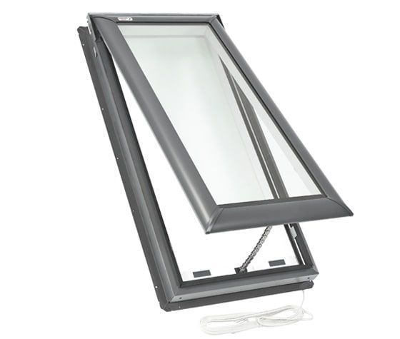 This skylight is powered by a factory-installed, solar-charged battery pack, which you control with a wireless remote. Its rain sensor signals the skylight to automatically close in damp weather to protect the room below. Available in custom sizes only.